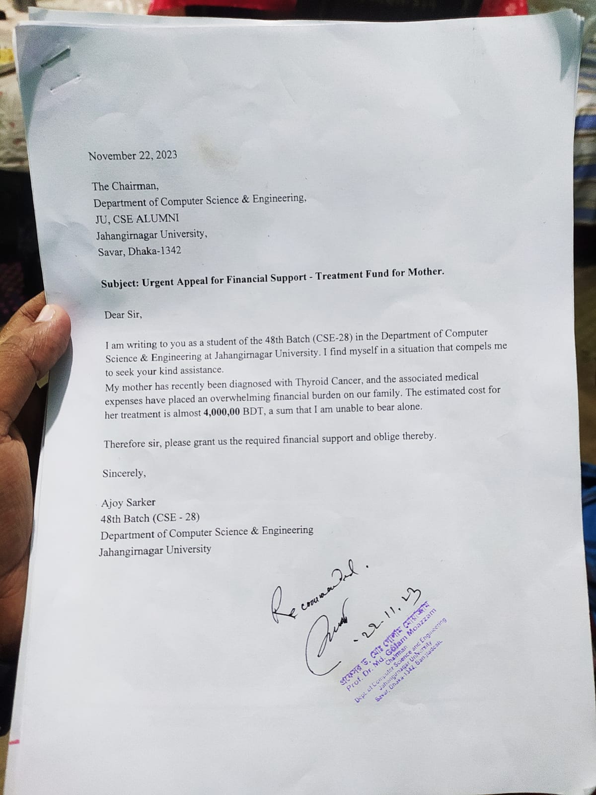 Treatment Fund for Shah Mostaq Ahmed Saiqat (25th Batch)